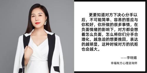 当然,并不是所有人都能够准确无误地找到问题的根本,这需要专业老师的帮助。如果你自己看到了问题,但是对于这个问题的深层次原因并不知道如何做,可以找老师做一对一咨询,老师会帮你层层剖析问题,从根本上找到你们分手的原因。